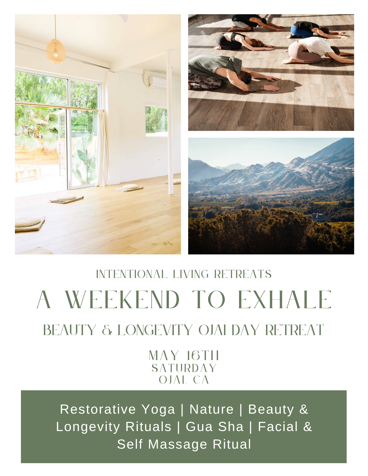 Nestled in the serene beauty of Ojai, A Weekend to Exhale is an intimate two-day retreat devoted to beauty, longevity, and embodied well-being—rooted in Traditional East Asian wisdom. This immersive experience invites you to slow down, nourish your skin and spirit, and cultivate radiance from within.